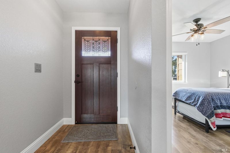 This fully remodeled 3-bedroom, 2-bath home sits on a spacious corner lot and is truly move-in ready. Inside, you'll find water-resistant laminate flooring throughout and ceiling fans in every room, giving the home a clean, modern feel. The updated kitchen with new counter tops is both stylish and functional with canned lighting, Rivalti work station sink, including a motion sensor faucet and an energy efficient Lg dishwasher. The large family room includes a separate area for dining and a cozy wood burning fireplace. New dual paned windows throughout the house including the sliding glass door. The primary bathroom has been fully remodeled with a new walk-in shower, updated vanity with dual sinks, a new toilet, and water-efficient faucets and shower head. All interior doors throughout the home have been replaced, adding a fresh, modern touch. Two secondary bedrooms feature stylish barn doors on the closets along with custom-built closet inserts, providing both character and smart storage solutions. The guest bathroom has also been updated with a new vanity, sink, faucets, mirror, toilet, and a newly refinished shower. New front yard automatic sprinklers as well as new garage lighting with Led lights. This home has it all no detail missed. You won't be disappointed, and it's ready to impress even the pickiest buyers.