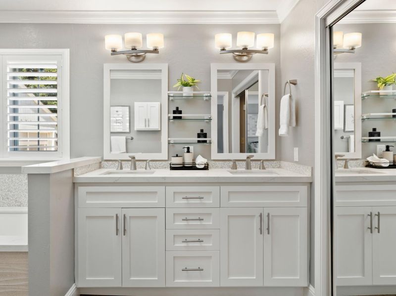 - Double Sinks, Shower and Tub, Stall Shower, Tile, Tub in Primary Bedroom, Updated Bath