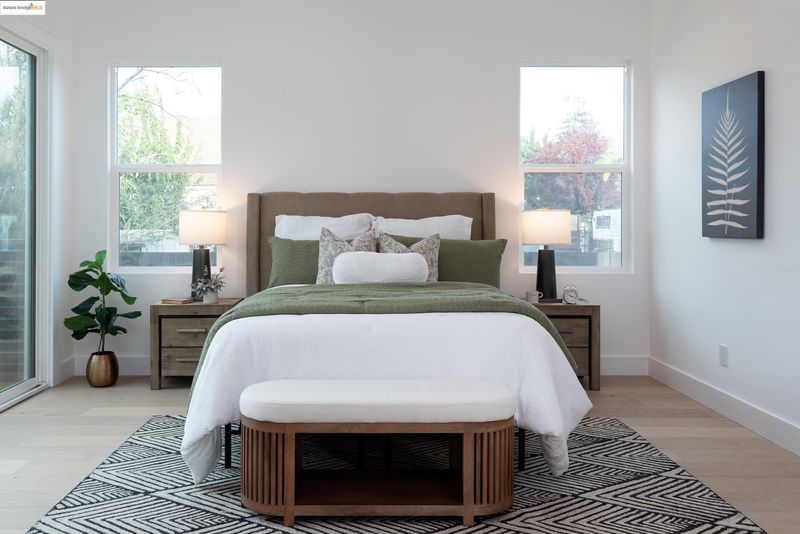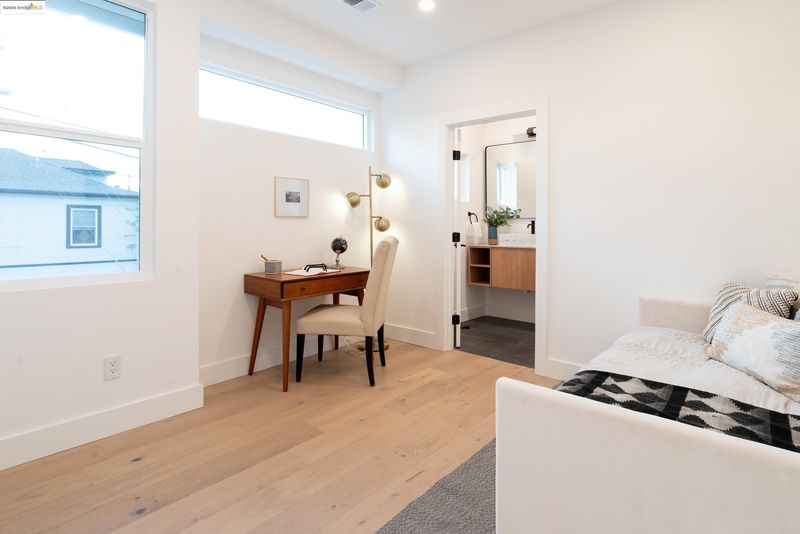 Welcome to this stylish 3 bedroom, 3.5 bath home on the Oakland/Emeryville border. Updated throughout, each bedroom includes its own en-suite bathroom—ideal for guests or multi-generational living. The open-concept layout features a bright living area and a modern kitchen with sleek finishes and stainless steel appliances. Enjoy off-street parking with both a driveway and attached garage, plus a private yard for relaxing or entertaining. Located in the highly convenient NOBE corridor, just minutes to Emeryville shopping, local cafés, BART, and commuter routes.