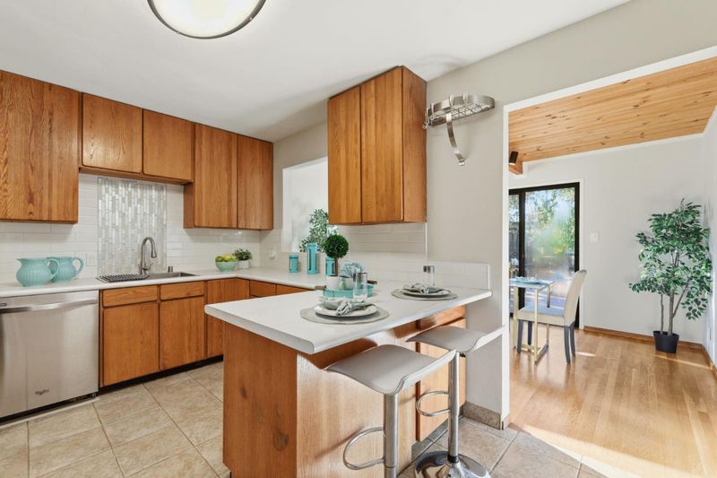 This darling, light-filled home combines the vintage charm of its original 1940s construction, with a wonderfully practical addition, and modern, tasteful updates. Boasting an excellent layout, with three spacious bedrooms, including a primary suite with a walk-in closet and its own full bath, this lovely home has everything you might want. The kitchen was recently updated with new counters, a new stove, and a beautiful tile backsplash. The hardwood floors were recently refinished. The outdoor spaces are very natural with mature plantings and fruit trees, as well as a shed/workshop and a greenhouse. There are entertaining spaces in both the front and back. Imagine having friends over for summer BBQs on the back deck, and sitting out on the front patio with your morning cup of coffee, watching the hummingbirds in the flowers and the squirrels chase each other around the redwood tree. This beautiful home offers the coziness and peace of your own little oasis, but is also close to major roadways, shops, restaurants, and businesses the perfect combination for Silicon Valley living!