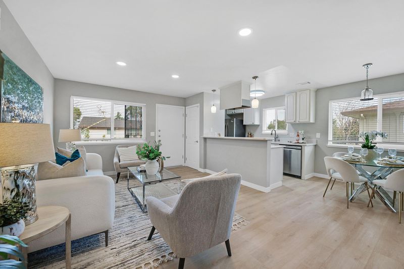 This thoughtfully updated 2-bedroom, 1-bath home offers a bright, open, and welcoming interior. Sun-filled spaces and an open floor plan create a warm atmosphere, enhanced by fresh interior paint, new vinyl flooring, dual-pane windows, recessed lighting, and new light fixtures throughout. The dining area offers a serene glimpse of the mountains to start your day. Residents can enjoy the community pool, a highly rated elementary school nearby, and easy access to the Alameda Creek Trail for outdoor recreation. Ideally located minutes from Quarry Lakes, Union Landing, BART, and with easy access to I-880, this move-in-ready home is a true gem in a vibrant and convenient location.