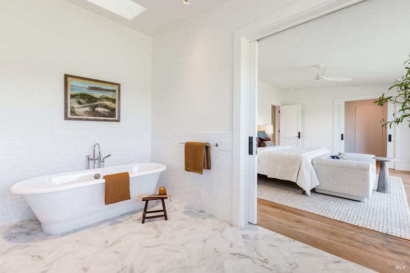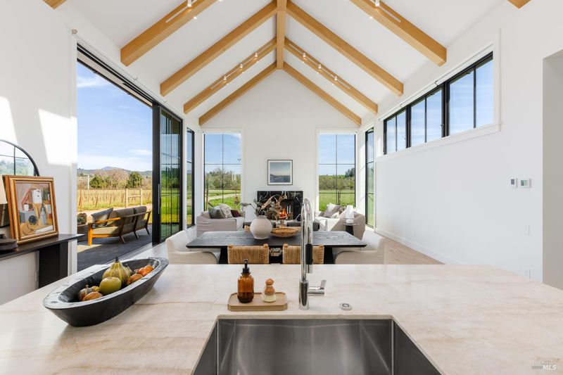 Just four miles from downtown Healdsburg along picturesque West Dry Creek Road, this newly built modern farmhouse offers a refined take on Wine Country living in one of Dry Creek Valley's most sought-after locations. Set on an a low-maintenance 1/3 acre parcel, this three-bedroom, three-bath residence seamlessly blends contemporary design with relaxed country elegance. At the heart of the home, a dramatic, living room with vaulted 20 foot ceilings creates an inviting light-filled gathering space. The adjoining gourmet kitchen is thoughtfully appointed for both entertaining and everyday living, featuring a Lacanche gas range, Wolf ventilation hood, Sub-Zero refrigerator, and temperature controlled wine cooler, Miele dishwasher, stone countertops and custom cabinetry throughout. Designed for effortless indoor-outdoor flow, the main living room doors slide open to a patio overlooking neighboring vineyards. This is an ideal setting for dining, entertaining, or simply enjoying the tranquil rhythm of Dry Creek Valley. This exceptionally low maintenance parcel offers a built in bocce court, sufficient space for raised bed gardening or a future swimming pool. Additional highlights include a standing seam metal roof, a 27 kilowatt Tesla Powerwall energy system, laundry room, a one car garage with EV charger, a high-producing well and state-of-the-art filtration system, providing a reliable water source. This is truly a rare and exceptional opportunity to own a thoughtfully designed brand new, luxury retreat in Healdsburg's renowned Dry Creek Valley.