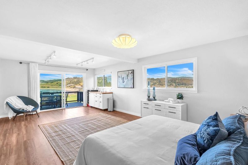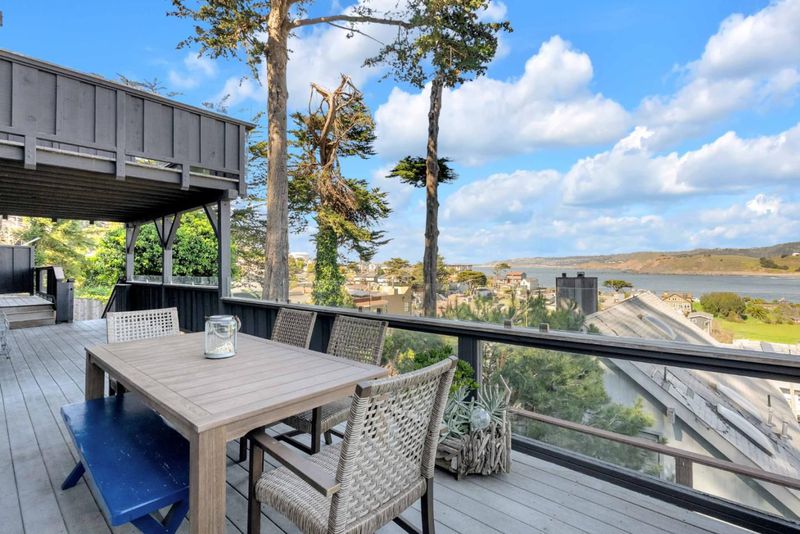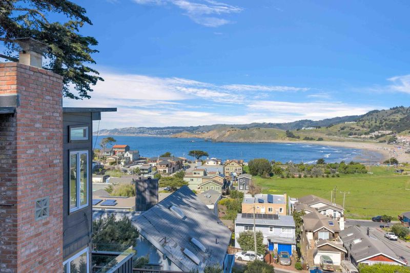 BIG VIEWS | Panoramic Pedro Point Living! Experience breathtaking, sweeping ocean and coastal views from this stunning 5-bedroom, 4-bath home. The light-filled upper level features an open-concept layout with rich Brazilian cherry floors, gas appliances, solid-wood cabinetry, and walls of windows opening onto a spacious private deck, perfect for relaxing or entertaining while you enjoy sunsets and the vibrant coastal vibe. The thoughtfully updated primary suite includes its own view-facing deck and a spa-inspired bathroom with a walk-in shower. Three additional bedrooms, a convenient laundry room, and a generous breezeway with abundant storage complete the lower level. A separate ground-floor studio apartment offers rental potential or guest quarters, complete with a full kitchen and washer/dryer. A versatile bonus room ideal for a home office, music room, or creative studio. Outside, enjoy low-maintenance living with a fully fenced artificial turf yard and a relaxing hot tub (currently not fully operational). Just moments from beloved local spots like Humble Sea Brewing, Soul Grind Coffee, Grocery Outlet, and trailheads, this home perfectly blends location, lifestyle, and opportunity. Don't miss this rare Pedro Point treasure.