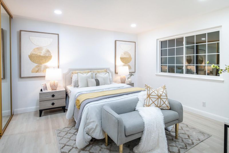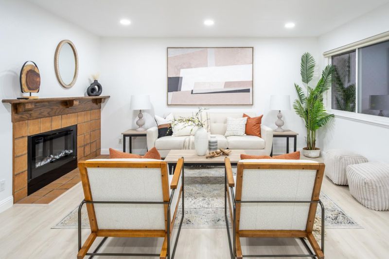 An incredible chance to own this charming condo in serene Lakeside Commons. This two-story home offers 2 bedrooms, 2 bathrooms, and 1,212 SF of living space on a 1,980 SF lot. External stairs lead to a deck entrance opening to a bright, airy floorplan. The interior boasts new paint and flooring, while the spacious living room is filled with natural light through dual-pane windows. The recessed lighting and electric fireplace create a cozy atmosphere. The semi-open kitchen has modern appliances including brand new refrigerator, granite countertops, and a dining area with built-in cabinets. Sliding doors open to a balcony overlooking the pool. First floor also offers a bedroom, bath, and laundry with a washer/dryer. Upstairs features a bedroom with a closet, en-suite bathroom with a standing shower, tiled walls, and a vanity. Additional amenities: 1-car garage, designated carport, pool, spa, gardens, ponds, guest parking. Located in desirable Cambrian Park, very close to Los Gatos downtown with San Jose prices. Walking distance to top schools such as Carlton/Union/Leigh. Nearby Norman Y. Mineta Highway, parks and hospitals provided convenient commuting and living.