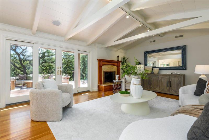 With 5 bed /4 baths, this home has space & options. The 1.14+/- ac. gated prop. enjoys level lawn, pool & mature privacy trees. The home is welcomingthey say the kitchen is the heart of the home & this space embodies that. Amenities include quality appliances & extras: 6-burner Wolf range, 2 ovens, microwave & warming drawers, 2 dishwashers-one for dishes/one for pots & pans. Exceptional storage with pull out shelving, custom corner cabinets & and an appliance lift. The island provides workspace & seating. An adjacent family room has light, a fireplace, & access to the large deck. French doors open to incorporate the formal dining/living rooms into this space. Beamed ceilings, a fireplace, hardwood floors, a wall of windows & doors allow you to access the deck, to enjoy the view & host large gatherings. With a private entry a flexible, bookshelf-lined space could be an office, au pair or guest suite. There are 2 primary suites: 3 additional bedrooms + an office. The upper-level has the second primary & includes a bonus room for an office/nursery/or workout space. There is a bedroom off the family room (ideal for guests). Great Portola Valley location: close to local shopping, Alpine Hills Swim & Tennis club, The Alpine Inn, excellent PV schools, & just 4 min. to Hwy. 280.