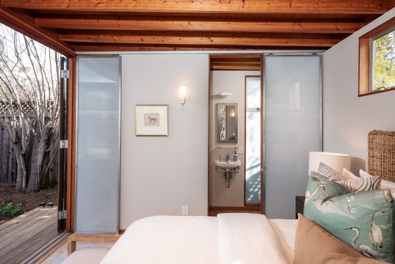 This renovated home is special. The rear garden is south-facing and a retractable wall of glass opens the great room to the garden. Skylights amplify the already present natural light. Comfortable yet sleek, the walnut floors feel solid underfoot and the colors are soothing. The kitchen is designed with custom cabinets and Italian Basaltina countertops. For the technically minded, this home has NEM 2.0 solar (that more than covers annual electrical use), two Level-2 EV chargers, all-electric high-efficiency heat pump heating and cooling, and water heater. The detached ADU is a standout, built with intention; it was even featured in a New York Times (see disclosures). With cedar siding, plaster walls, cork floors, and a full bath, its been used as a bedroom, office, movie room, and hangout space. This space is flexible and genuinely useful. The 7,000+ sq ft lot is filled with low-water California native plants that change with the seasons to continuously provide color. The winter landscape is subtle and quiet except for the birds, while spring is bursting with poppies, other wildflowers. Walk to downtown Palo Alto or Menlo Park, Haven Wine Bar, The Willows Market, Burgess Park, and bike easily to Stanford. This is a home that feels grounded, connected, and deeply loved.