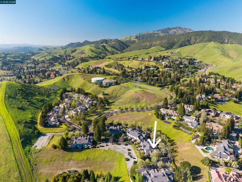 Fabulous Blackhawk Townhome with gorgeous views! Beautiful Eagle Nest Townhome with 1,976 sq.ft. apx. on .11 ac. lot apx. inside the gates of Blackhawk. Charming Entrance! Marble tile foyer. 1st floor powder bathroom. Inviting kitchen with GE Range and recent stylish painted cabinetry, hardware and new Whirlpool stainless refrigerator. The adjoining family room conveniently located next to the kitchen is an ideal entertainment area or workspace area. New stylish laminate flooring in the family room, living room and dining area. The beautiful living room and dining area have picturesque views of the surrounding hills and access to the charming rear yard and outdoor patio. Well-designed floorplan with three bedrooms, two full baths and a convenient laundry room on the upper level. Primary Bedroom Suite with volume ceilings, ceiling fan/light, and picturesque views. The adjoining primary bathroom has two vanities, separate tub and shower and a walk-in closet. The upstairs secondary bedrooms share a lovely jack and jill bathroom. Gorgeous new laminate flooring in the Family Room and Living Room and Dining Room. New Carpet in 2025. Neutral Paint throughout. Fabulous place to call home for great indoor-outdoor living and views!