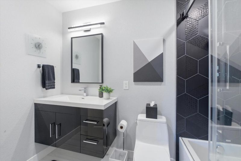- Bidet, Double Sinks, Half on Ground Floor, Primary - Stall Shower(s), Shower over Tub - 1, Stall Shower, Tile, Updated Bath