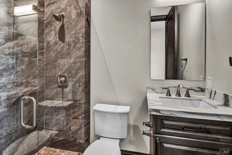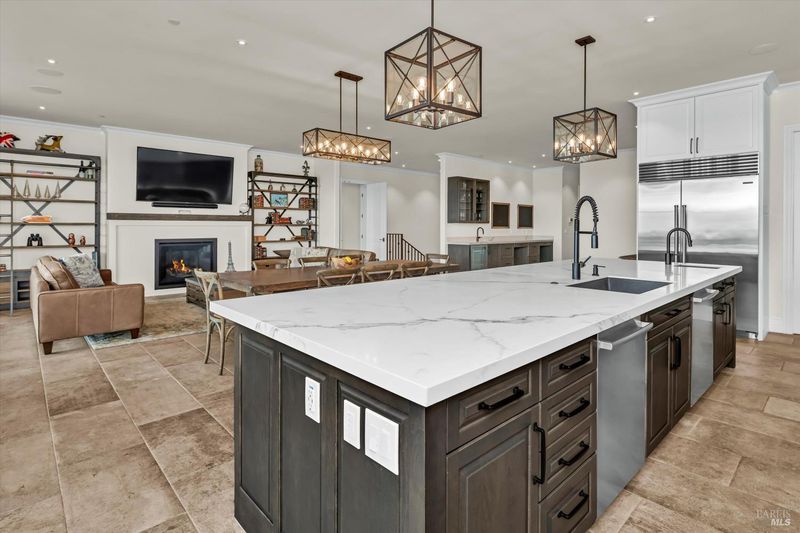 Welcome to this stunning five-bedroom, seven-bathroom residence, where luxury meets functionality. With two powder rooms and two fireplaces, indoor and outdoor living blend seamlessly. Enjoy breathtaking views through four large sliding doors, each with automated roller shades. The main level boasts a grand Great room with a gas fireplace and gourmet kitchen featuring top-tier appliances and a walk-in pantry. The primary suite offers a spa-like bath and custom closet, with sliding doors leading to the deck. The lower level is an entertainer's dream, with a media room, wine cellar, and outdoor kitchen. Three en suite bedrooms and a second kitchen/laundry room complete this level. Additional features include a three-car garage, smart home system, owned solar panels, and lush landscaping with fruit trees. Experience luxury living in every detail of this meticulously designed home.