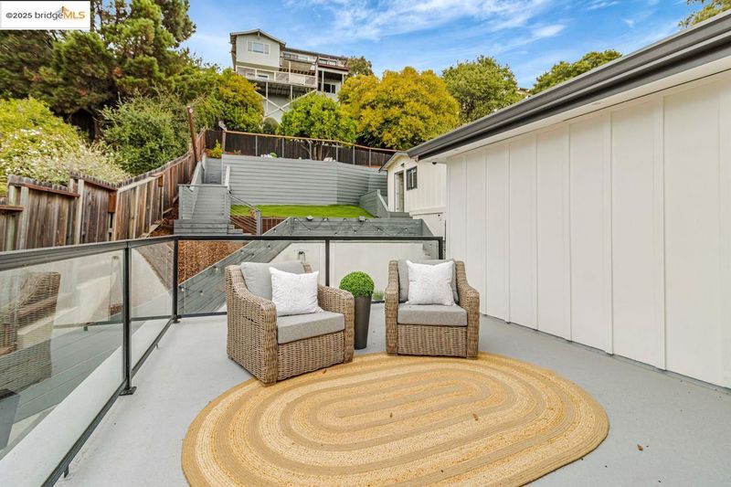 This beautifully reimagined property has been lovingly transformed into a stunning single-family home with a bonus studio, offering 5 bedrooms and 4bathrooms. Every detail inside and out has been thoughtfully crafted. The main level opens with a sunlit living room, anchored by a sleek elongated fireplace, leading to the gourmet kitchen with sparkling white cabinetry, gold hardware, high-end appliances, dazzling light fixtures, and an expansive breakfast bar.Two dining spaces—formal and casual—make gatherings effortless. Also on this level are two spacious bedrooms, each with its own stylishly upgradedbathroom. The floor plan flows seamlessly to both the charming front yard and landscaped backyard. Upstairs, the primary suite is a private retreat withserene views, a balcony, and a spa-inspired bath with soaking tub, separate shower, and dual vanities. A second master suite provides equal comfort andsophistication, ideal for guests or extended family. The fully functional studio features its own updated kitchen, bathroom, and views, perfect for rentalincome or guest use. Outdoors, multi-level decks offer entertainment and relaxation, while tasteful fencing, new pavement, garage, and income potentialmake income potential make this home complete.