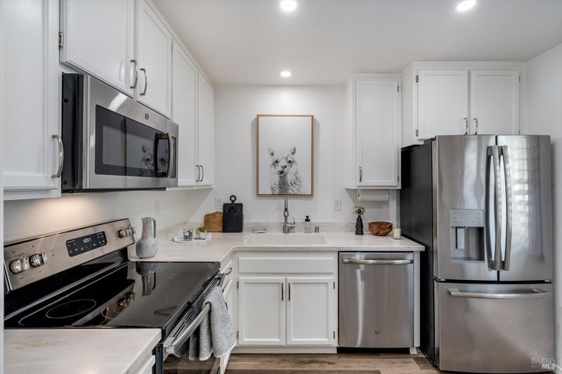Nestled in desirable Sonoma, this sunny single-story condo offers comfort, privacy, and convenience. Located at the back of the complex, it features an open floor plan with a spacious living room, gas fireplace, vaulted ceilings, and a skylight for abundant natural light. Dual-paned sliders open to a low-maintenance backyard with a trellis-covered patio and sunny garden areas. The kitchen includes stainless steel appliances, stone countertops, recessed lighting, and pull-out drawers. The primary en-suite bedroom offers three closets and a large bath, while the guest bedroom has access to a second full bath. Enjoy the beautifully maintained grounds, a community pool, and a prime location just a short distance to Sonoma Plaza, shops, restaurants, and wineries. Own your place in Sonoma's Wine Country!