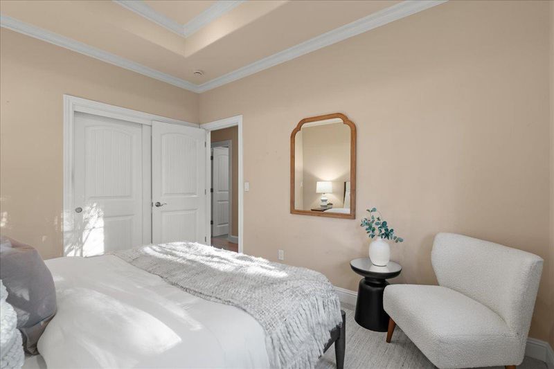 Storybook Tudor on one of Willow Glen's most iconic streets "Cherry Avenue", custom built in 2011 by Bella Casa Builders, this dreamy single story masterpiece boasts 4 bedrooms, 2.5 bathrooms, 2,311 sq.ft., plus a 155 sq.ft. basement perfect for additional storage and a 441 sq.ft. detached 2-car garage with an automatic LiftMaster privacy gate. Formal entry with gleaming hardwood floors, and an Inviting formal dining room with French doors that open to the front porch create seamless indoor/outdoor living. The gourmet kitchen shines with natural stone countertops, Bertazzoni gas range, stainless steel farmhouse sink, a breakfast nook for casual dining and bar seating is perfect for entertaining. The kitchen opens up to the living room creating an open air space featuring a gas fireplace with stacked stone design and a french door to the private backyard. Luxurious primary suite with spa-like bath and custom walk-in closet. Serene backyard with custom paver stone patio with lounge and dining area. Curated pergola with manicured grape vine over the garage and an espalier drapes the driveway with Pear trees, Fuji, Red Bartlett, Braeburn apple, Comice and Gala Apple and a lemon tree. Stroll to downtown Willow Glens Lincoln Avenue shops & restaurants, walk to schools and parks!