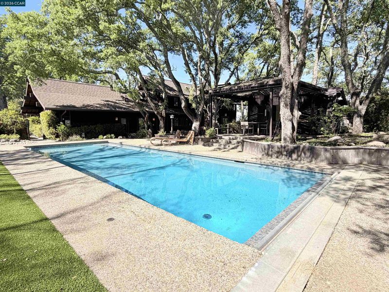 An architectural landmark in Alamo designed by renowned architect Henrik Bull. Double lot! Four bedrooms + office. Set in a rare, predominantly flat hilltop setting, this property offers the uncommon combination of expansive level land, views, and a quiet, walkable neighborhood. Bull’s signature design is on full display with soaring peaked ceilings, exposed beams, walls of glass, and redwood, creating a home that is both dramatic and deeply livable. 2 full + 2 half baths in home, full bath in pool house. Professional photos on the way!