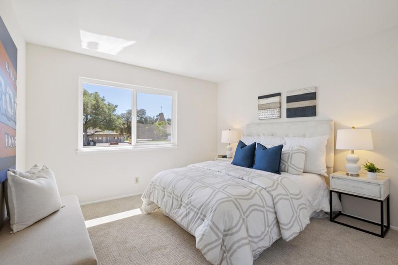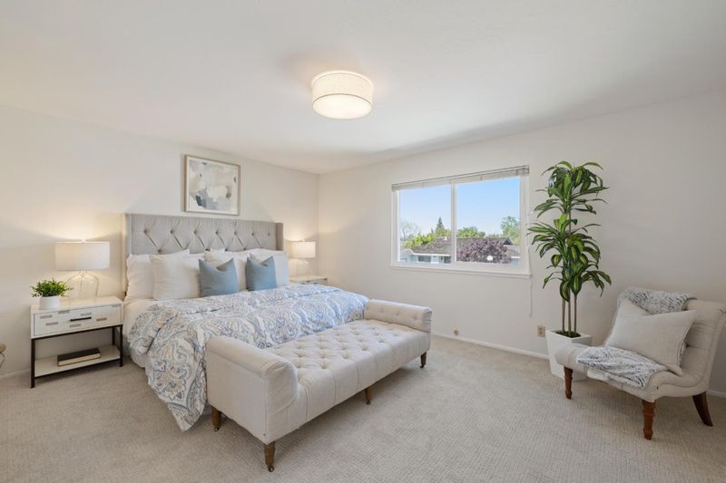 Don't let the lot size fool you, there is great outdoor space! Ideally located in Blue Lake Square, a highly desirable enclave of 24 homes, this spacious and freshly updated home feels like its part of a quiet, private community, yet just minutes from conveniences and sought-after Los Altos schools. On the market for the first time in over 50 years, this residence is an attached single-family home with just one common wall at the garage. Newly painted inside and out, it has new carpet and maple laminate floors in select rooms, which create a bright, inviting environment. Generous living areas include a spacious living room, formal dining room, and an open kitchen-family room that connect to the private wraparound yard for everyday living and entertaining. With 4 bedrooms and 2.5 baths, the layout offers separation of space with a bedroom wing and upstairs primary suite. Outdoor living is equally inviting with expansive patio space, a fireplace, retractable awnings, and fruit trees. Adding the finishing touch is access to top schools including Los Altos Oak Avenue Elementary, within walking distance, Blach Intermediate, and Mountain View High, also within walking distance. Plus, a community pool and convenient access to Highway 85 puts all of Silicon Valley within easy reach.