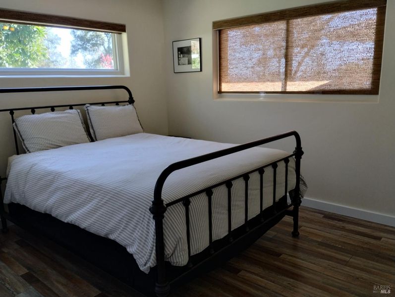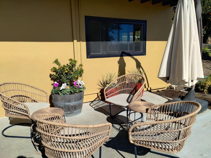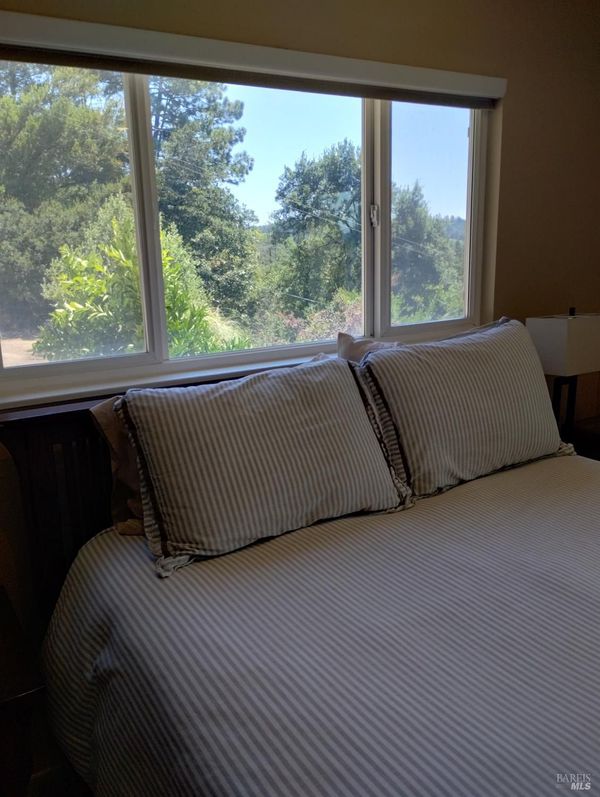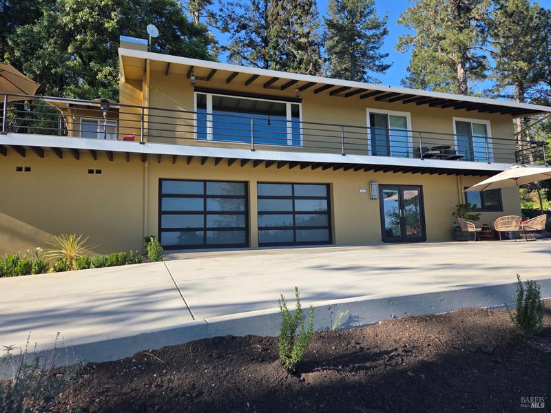 This renovated late mid-century Howell Mountain residence, positioned above Saint Helena, provides sweeping southeastern views across Napa Valley. Carefully selected landscaping and extensive use of glass allow for unobstructed views of the natural surroundings from each room. The property features three bedrooms and two bathrooms, with numerous recent enhancements, including maple hardwood flooring, new Anderson doors and windows, fresh interior and exterior paint, upgraded recessed lighting, new exterior fixtures and a laundry room with washer and dryer. The newly installed concrete driveway curves around the house from the entrance, offering ample outdoor parking for up to seven vehicles in addition to a two-car garage equipped with frosted etched glass doors. Two solar-charged backup batteries deliver uninterrupted, quiet, maintenance-free electricity during outages, while water filtration tanks provide softening. A spacious wraparound deck includes a built-in natural gas grill with panoramic valley views. 462 Bella Vista offers a self-contained apartment on the ground floor with two bedrooms and one bathroom. The unit has been fully updated, featuring new Anderson doors and windows, a contemporary bathroom with a pebble river rock floor, a kitchen fitted with Corian countertops, and improvements like fresh flooring, new paint, and recessed lighting throughout. Included is a two-car garage with washer and dryer, plus frosted etched glass doors that match those at 460. There's also an outdoor patio with views of the valley. The sale includes all furniture in both the main house and the apartment. Set in a peaceful and private location, this property is the last home on a private street, and is just ten minutes by car to Main Street and five minutes to Saint Helena Hospital. The lisiting agent is one of the owners