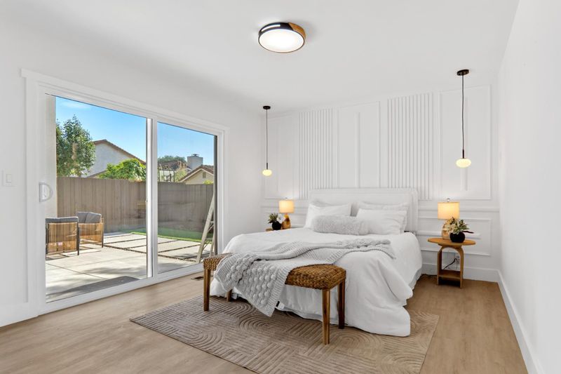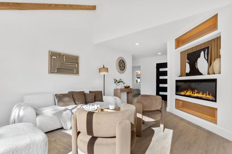 Welcome to this beautifully upgraded, move-in ready home on a quiet cul-de-sac in Milpitas. Thoughtfully redesigned with modern finishes, this home offers style, comfort, and functionality. Step inside to a bright, open floor plan featuring wide-plank flooring, recessed lighting, and a custom accent wall with integrated lighting and a sleek linear fireplace. The living and dining areas flow seamlessly, ideal for everyday living and entertaining. The remodeled kitchen showcases custom flat-panel cabinetry, quartz countertops, stainless steel appliances, and a designer backsplash. Glass-front cabinets and modern finishes elevate the space while maintaining practicality. The spacious primary bedroom features a custom accent wall and direct backyard access through sliding glass doors. Both bathrooms are updated with spa-inspired finishes, frameless glass showers, matte black fixtures, and quartz vanities. The private backyard offers a low-maintenance design with concrete patio, artificial turf, and defined landscaping, perfect for relaxing or entertaining. Located near parks, shopping, dining, and major commute routes, this turnkey home is a must-see.