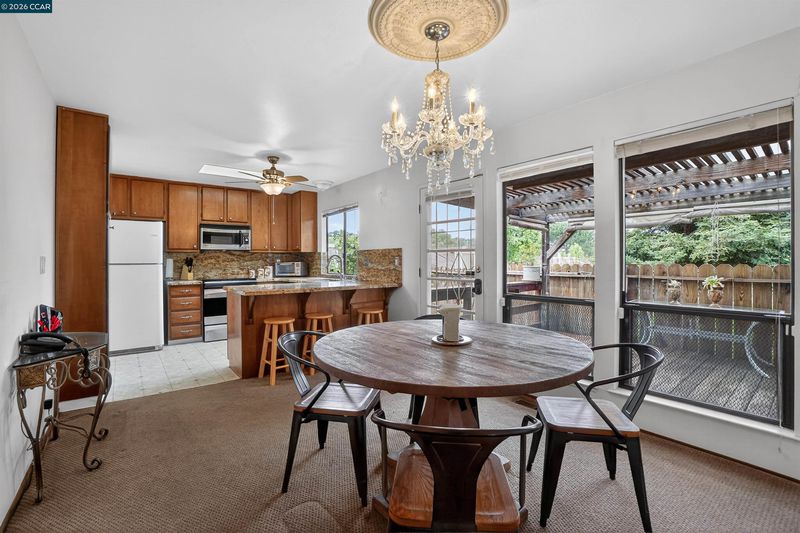 Welcome home with surrounding peaceful hill views in Martinez, CA. This home is an incredible opportunity at a great price. Bring your ideas to make it your own! Pick lemons or peaches off your own backyard trees. One of the lowest HOA fees in the area. Spacious end unit backs to a gorgeous greenbelt. Bright 3 bedroom, 2 bath townhome. Walk into a large covered front deck off the primary bedroom, enjoy a nice warm fire in your living room on cold days. Updated kitchen with granite counter tops, dining room with access to a nice covered back deck. Indoor laundry room, 2 car garage with a bonus room (not included in sq ft). Nice clubhouse and swimming pool to enjoy. Starbucks shopping and restaurants nearby.