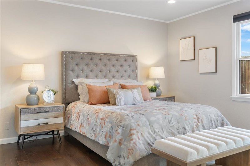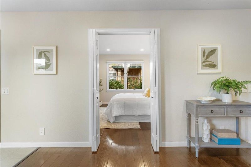 Experience refined coastal living in Harbor Bay Landing in this beautifully updated single-level, 2-bedroom, 1-bath townhome-style condominium where quality, design, and location come together seamlessly. Rich hardwood floors run throughout the living spaces, highlighting a lovely living room with a cozy gas fireplace, perfect for relaxing or entertaining. The updated kitchen features quartz countertops, custom Heath tile, full pull-out pantry shelving, and high-end appliances including a Bosch dishwasher, Bertazzoni dual fuel range, and LG refrigerator. The spacious primary bedroom offers a built-in dresser and generous closet space. The versatile second bedroom is ideal as a guest room or home office. The spa-like bathroom includes a large walk-in shower and custom cabinetry with soft-close drawers and pull-out shelving. The large outdoor patio lives like an extension of the home, offering plenty of space for outdoor dining and entertaining. Located in a gated community with a covered, reserved parking space, just moments from top-rated schools, shoreline trails, the San Francisco Ferry, championship golf, and premier tennis and swim amenities.