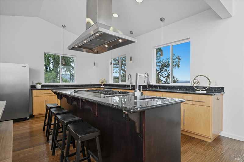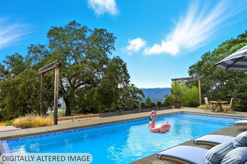 Welcome to 31000 Pine Mountain Road, a truly exceptional estate perched high, with over 11 private acres just five minutes from inviting downtown Cloverdale. This elegant single-story home offers panoramic views overlooking Cloverdale, Alexander Valley and beyond from nearly every room, with a seamless indoor/outdoor layout that blends luxury and nature. The chef's kitchen is a dream, complete with granite counters, a spacious island, walk-in pantry, Viking appliances, and multiple sinks, including a wet bar. The expansive great room features a wood-burning fireplace and opens onto a large south-facing deck, ideal for entertaining or simply soaking in the breathtaking surroundings. Outside, enjoy resort-style amenities including a heated pool, cabana room complete with sink, refrigerator, power, covered patio, private outdoor shower, and lighted bocce court under the shade of majestic oak trees. The property includes both PG&E and an owned solar system, offering the best of energy efficiency and reliability. For the hobbyist or equestrian, there's an impressive 2,800 sq ft building perfect for a workshop or storage, plus a 100+ year old barn and ample space for horses or farm animals. This is Sonoma County Wine Country living at its finest ~ spacious and graceful.