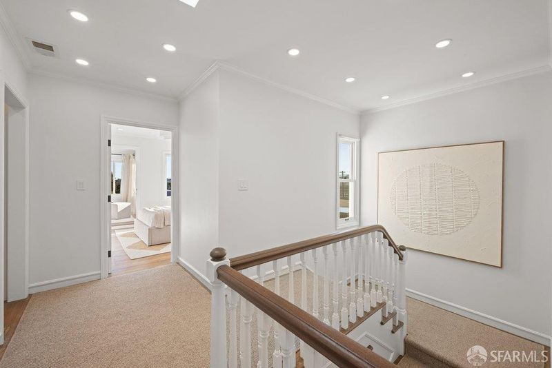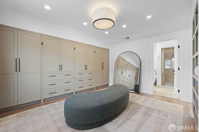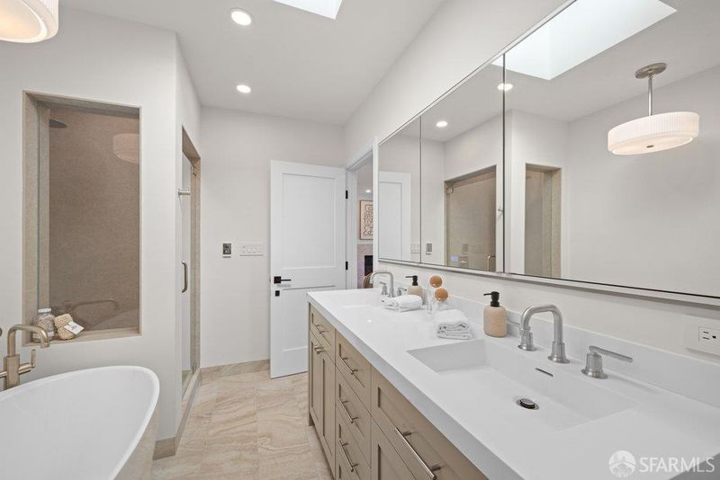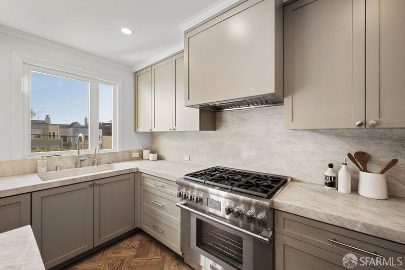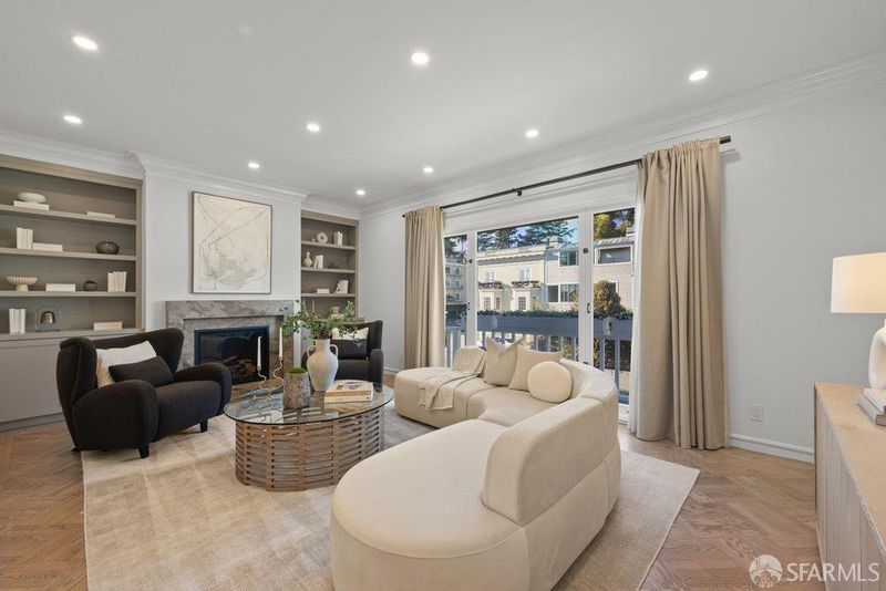 Perched on a coveted, tree-lined street in Sea Cliff, this partially detached residence has been reimagined with refined interior architecture, curated finishes, and warm, elevated details throughout. An inviting foyer opens to the main level, which offers expansive gathering spaces framed by custom cabinetry and millwork. A light-filled living room with a stone-clad fireplace flows seamlessly into the dining area and an updated kitchen designed for both daily living and entertaining. The kitchen features Taj Mahal countertops and backsplashes, a waterfall island with seating, Thermador panel-ready appliances, custom LED strip and puck lighting, a built-in breakfast nook with banquette seating, and a dry bar with storage. Upstairs, newly updated skylights bring in abundant natural light and define the private quarters, which include three bedrooms and a large sunroom suitable for use as a home office, guest room, or playroom. The primary suite offers views of the Lincoln Park Golf Course, a stone-clad gas fireplace, a spacious dressing area, and a large custom closet with cedar-lined cabinetry. The primary bath includes heated floors, a freestanding soaking tub, designer tile selections, and layered, dimmable lighting. The lower level provides flexible open space with epoxy flooring, a wine room with quartzite countertop and wine refrigerator, a laundry room with sink and storage, and a dog wash station. Outdoor features include professionally landscaped grounds with micro-irrigation, a private backyard with ambient lighting, an extra-wide System Pavers driveway, automated wind garage door, energy-efficient and custom window treatment and doors, pre-wired for EV charging, and a new HVAC system. Close to the Katherine Delmar Burke School and just blocks from Lands End, China Beach, Baker Beach, and the Lincoln Park Golf Course. Minutes to local eateries, boutiques, and neighborhood amenities, the home offers exceptional access to San Francisco's most celebrated coastal and park amenities in one of the city's most iconic neighborhoods.