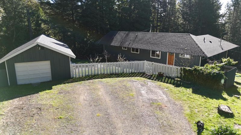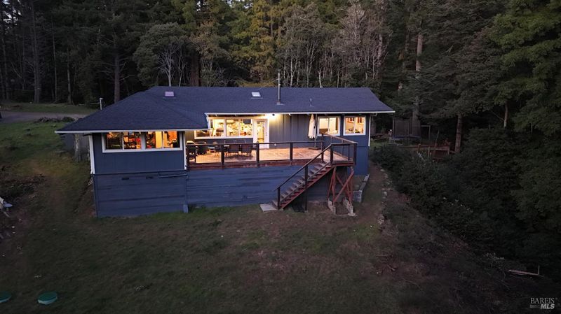 Stunning Craftsman retreat offering exceptional privacy and deeded beach access on 2.3 acres in coveted Island Cove Estates. This beautifully remodeled residence centers around a dramatic great room with soaring 13-foot open-beam redwood ceilings, rich hardwood floors, banks of windows with a touch of blue water, a wood-burning Jotul fireplace, and an elegantly updated kitchen designed for both comfort and relaxation. The home features three well-appointed bedrooms, including a spacious primary suite with dual walk-in closets and a generous en-suite bath. Just steps across the yard sits a detached single-car garage with office ideal for remote work or creative space. The grounds are a serene blend of open meadow and mature conifers, backing to a seasonal creek that comes alive in the winter months. Island Cove Estates is a vibrant, refined coastal community, prized for one of the South Coast's finest private beaches. A warm, inviting home offering remarkable privacy and substantial upgrades this is coastal living at its best.
