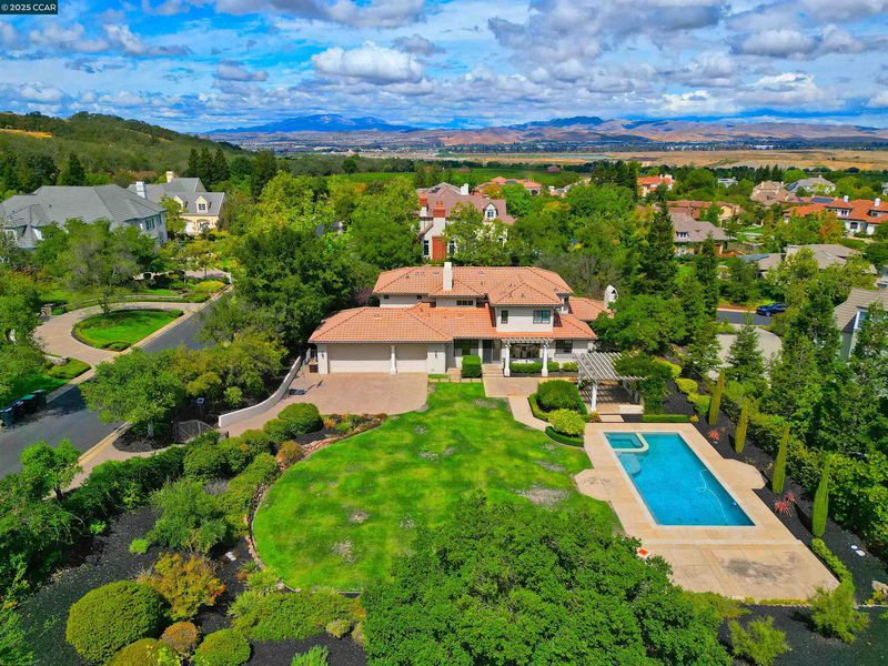 Park like backyard on a 26,615 square foot lot!! One of the most special corner lots in the gated community of Ruby Hill. The large lawn and pavilion area are perfect for large gatherings, baby showers, and weddings! The expansive backyard includes a pool, spa and three dining areas: one covered with a grill and refrigerator, one adjacent to a wood burning outdoor fireplace beyond the pool overlooking the entire yard and one just outside the family room. The interior of this custom built Mediterranean residence was updated with designer paint and new carpet installed last week. Wonderful floor plan. 4 bedrooms plus office. Office could be converted to a 5th bedroom. One bedroom plus office and full bath are on the main level. Double Viking ovens. Gated driveway in the back. Circular driveway in front. Make this your dream home!