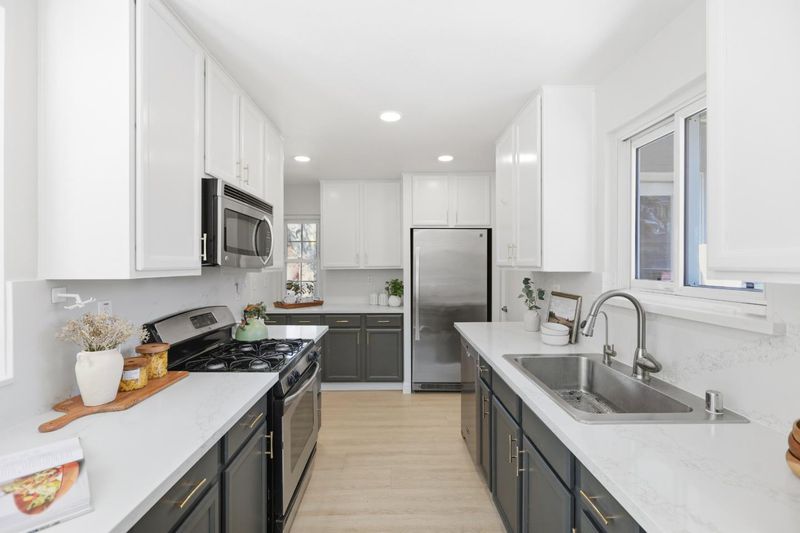 Charming and beautifully remodeled single-level ranch home on a picturesque tree-lined street in the heart of Santa Clara! This 3BD/2BA home features a bright, sun-filled living room with a wall of windows and a cozy fireplace, seamlessly connecting to the dining area with a modern chandelier. The updated kitchen offers stainless steel appliances and ample cabinetry, perfect for both everyday living and entertaining. The private primary suite is tucked at the rear of the home and includes a walk-in closet with built-in organizers, while two additional spacious bedrooms share a large hall bath. Thoughtful upgrades include high-efficiency central heating and A/C, Nest thermostat, whole-house water filtration system, Ring doorbell, and a finished garage with app-controlled opener. Enjoy a low-maintenance backyard designed for California living, complete with an outdoor kitchen, built-in BBQ, large patio, and serene water-wise garden. Ideally located just minutes from Nvidias new campus, Santa Clara University, Santana Row, Valley Fair, Santa Clara Square, and major commute routes including San Tomas Expressway and Highway 101. MUST SEE!