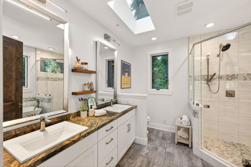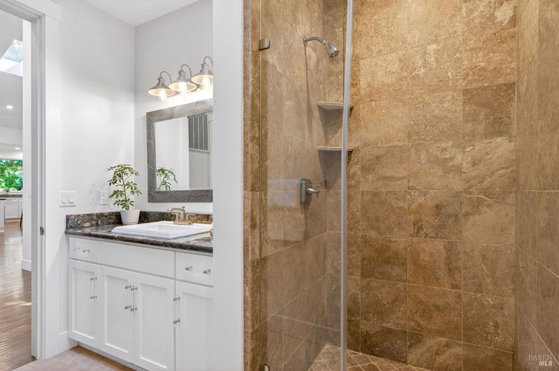 - Double Sinks, Shower Stall(s), Skylight/Solar Tube, Soaking Tub, Walk-In Closet