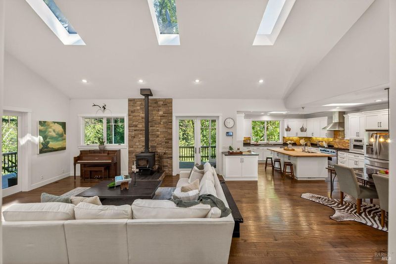 Nestled on nearly 5 acres, this breathtaking 2-level estate offers the rare combination of absolute mountain privacy and effortless Napa Valley living just minutes from world-class vineyards, acclaimed dining, and the charm of Browns Valley. Soaring 18' vaulted ceilings bathed in natural light from overhead skylights, 8' hand-selected solid walnut entry doors, Andersen windows, and rich hardwood floors throughout set the tone for the exceptional craftsmanship. The open-concept living and entertaining space flows seamlessly into a chef's kitchen. Kitchen features include a generous butcher block island, a formal dining area and a built in desk space. Wine enthusiasts can enjoy a 400+ bottle wine closet and wine fridge. Your main-floor primary suite is a true sanctuary, complete with a soaking tub, spa-style walk-in shower, and a custom-fitted closet. The second bedroom and bath are also located on the main floor. The second bedroom has its own private patio space. A private lower-level guest bedroom has it's own entry. A bonus flex room is located off of the garage and has possibilities as a home office, gym or studio. Enjoy the outdoor dining and lounge space on the expansive wraparound deck. Views of the lush grounds and redwoods are not to be missed. Privacy, craftsmanship, and Napa Valley at your doorstep, conveniently located close to shopping, schools and entertainment.