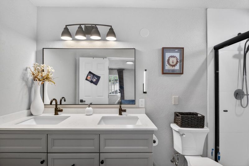 - Shower over Tub - 1, Double Sinks, Tile, Stone, Updated Bath, Full on Ground Floor, Primary - Stall Shower(s)