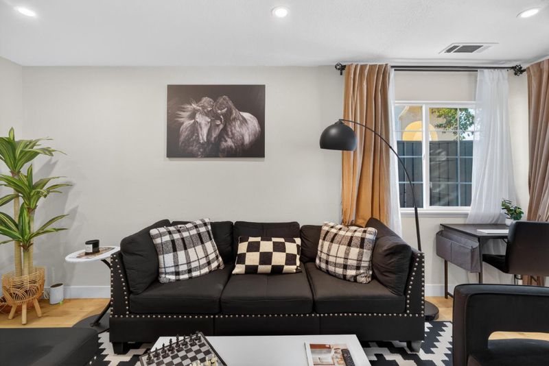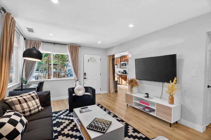Welcome to this charming 4-bedroom, 2-bathroom home located in the vibrant city of San Jose. With a spacious 1,438 sq ft layout, this home offers a fantastic family living experience. The kitchen is a culinary enthusiast's dream, featuring modern amenities such as a gas cooktop, double oven, quartz countertops, and a dishwasher. The family-friendly design includes a separate family room and a dining area within the family room, perfect for gatherings. Enjoy the comfort of central AC and heating throughout. The home's flooring is beautifully laid with tile and stone, adding elegance to the updated bathrooms equipped with double sinks and a stall shower. The property also offers a convenient laundry area with washer and dryer inside, catering to your everyday needs. The home is located within the Mt. Pleasant Elementary School District. Additional features include double pane windows and an electric vehicle hookup.