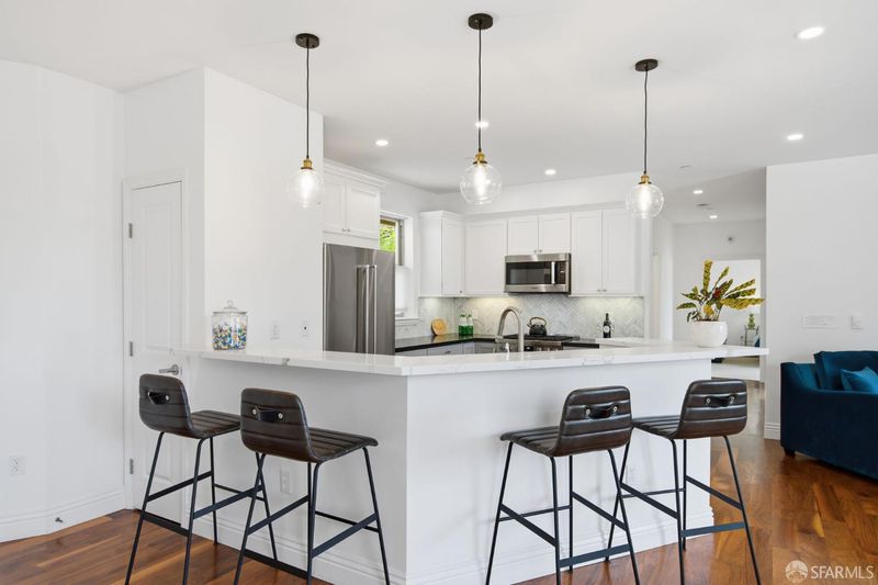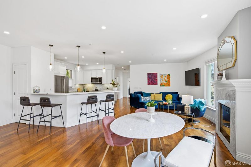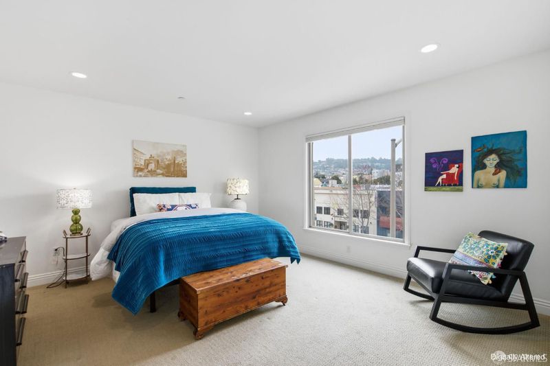 A southwest-facing corner condo filled with light right where the Mission, Bernal Heights, and Noe Valley meet. Light fills the condo throughout the day, with Sutro Tower framed perfectly against the skyline and the hills beyond. The layout feels easy and intuitive, with separation that makes sense. The living and dining areas are open yet well defined, anchored by a fireplace that grounds it all. It brings people together while still giving each zone its own purpose. These spaces open directly onto a generous private balcony, creating seamless indoor-outdoor living. Coffee in the morning, and by evening it's where everyone ends up before dinner. The kitchen sits at the center with plenty of counter space, abundant cabinetry, a gas range, and a wide counter bar that naturally becomes the gathering spot. Both bedrooms are down the hall from the main living areas, creating natural separation. The second bedroom flexes easily, whether set up for guests, work, or both. The second bath is roomy and comfortably accommodates guests, everyday routines, and the in-unit laundry without feeling tight. The primary suite feels private and generous, with multiple closets and a bath complete with a deep soaking tub, separate shower, and double sink vanity. Parking is included and elevator access keeps things simple. Upstairs, the rooftop deck opens to sweeping city views and wide sky, an easy spot to linger, connect, or take in the skyline with friends. Bernal Heights Park is nearby, with other green spaces woven into the neighborhood for a quick run, a walk with the dog, or time on the hill. Safeway is close, Whole Foods on 24th is easy, and the restaurants and cafes along both Valencia and Mission are steps away. Freeway access is simple, and MUNI and tech shuttle stops keep commuting flexible. A corner condo positioned exactly where you want to be.