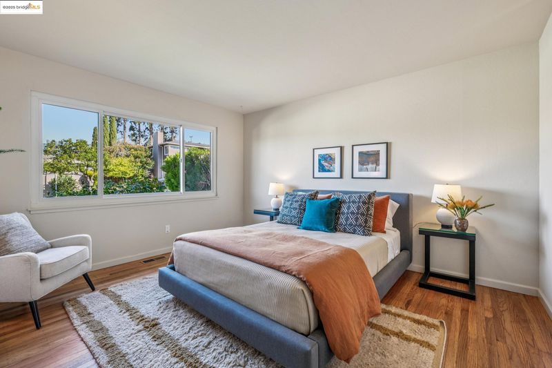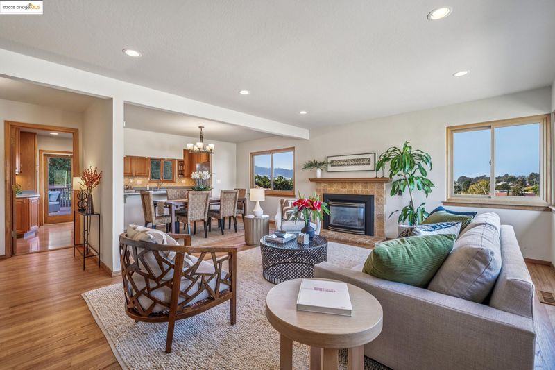 Sweeping views, warm woods and upgraded spaces distinguish this May valley Mid-Century home. Reflecting the indoor-out flow from public rooms to the expansive rear deck and yard, glass doors connect the open kitchen and and dining area to this inviting outdoor living area. Relax with a book or a glass of wine overlooking the sunset & MtTam. Entertain with ease:imagine backyard barbeques, fun lunches and warm weather dining. And after the weather changes you'll host guests and family gatherings in the spacious Livingroom with its brick fireplace and adjoining dining area.The main living area is all one level with 3 bedrooms & 2 remodeled baths including the Primary Ste. Refinished hardwood floors, dual pane windows, central heat & a/c. Interior stairs lead to lower level room opening to the back patio & int access to the garage.The back yard is fully fenced space w/ perimeter plantings, & the large sideyard may potentially be modified for RV or boat parking. Buyer to investigate.