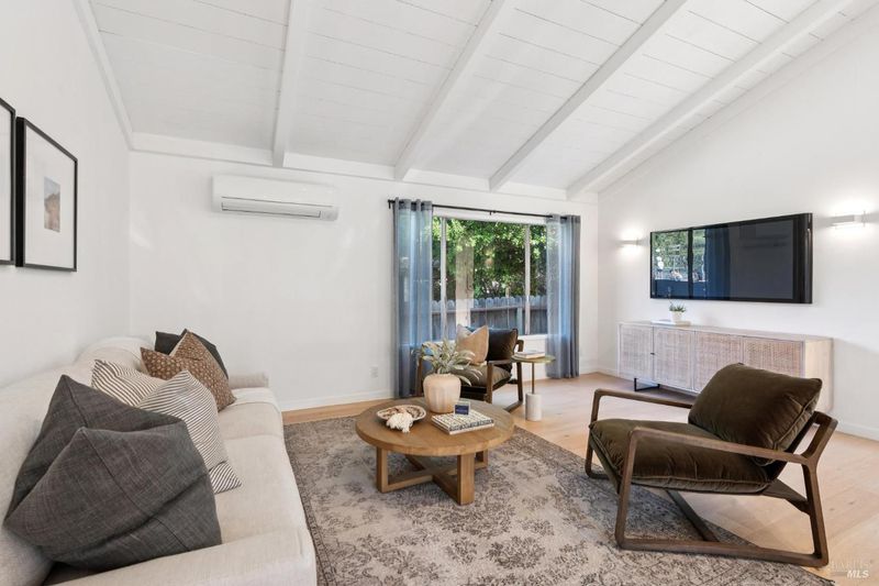 Single-level charmer tucked into San Rafael's desirable outer Dominican neighborhood! Great Condo alternative. Vaulted, open-beam ceilings and beachy hardwood floors set the tone, while a light-filled open floor plan creates an airy, welcoming ambiance from the moment you step inside this 3-bedroom, 2-bath home.