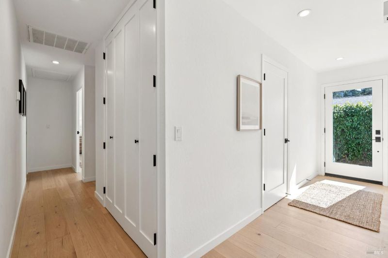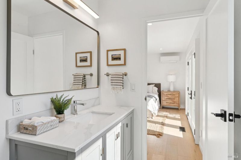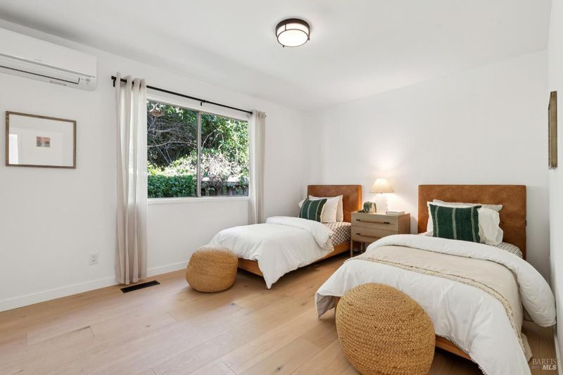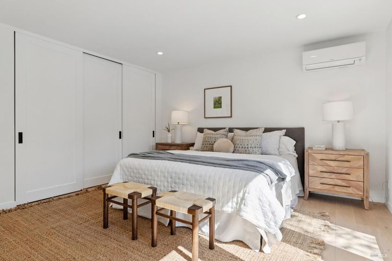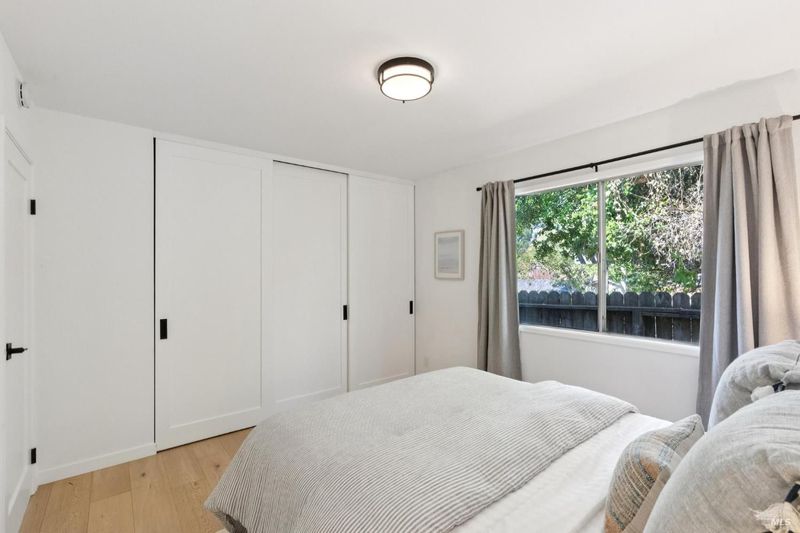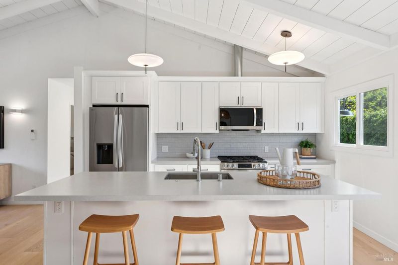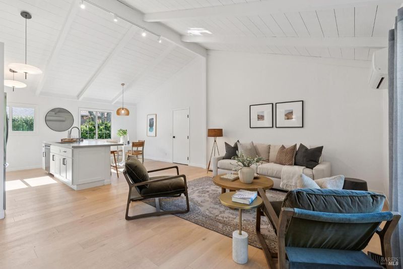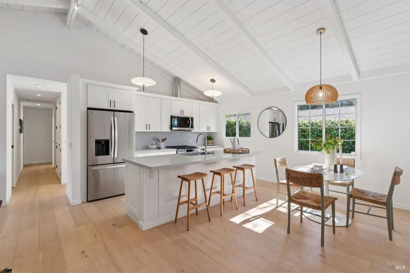 Single-level charmer tucked into San Rafael's desirable outer Dominican neighborhood! Vaulted, open-beam ceilings and beachy hardwood floors set the tone, while a light-filled open floor plan creates an airy, welcoming ambiance from the moment you step inside this 3-bedroom, 2-bath home. Extensively remodeled in 2024, the home features a stylish kitchen with sleek granite countertops, subway tile backsplash, stainless steel appliances, and a generous island with seating for four. The spacious primary suite offers large closets, a stunning ensuite bathroom, and French doors that open to a sweet, private yard. Thoughtful updates throughout include white oak wide-plank engineered flooring, new baseboards, doors, hardware, lighting, hot water heater, electrical panel, and more. Truly turnkey, this home blends comfort and style with seamless indoor-outdoor living on a private flag lot. Additional highlights include an attached two-car garage with direct access to the living room and an energy-efficient mini-split system for A/C. Conveniently located near Highway 101 in a walkable, flat, and charming neighborhood.