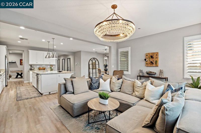 Built in 2018 & located in the sought-after Emerson Ranch neighborhood, this impressive 3,572 sq. ft. two-story home offers a thoughtful layout with extensive upgrades throughout. Upon entry, you’re welcomed by a private office and a versatile formal dining or bonus room that flows seamlessly into the heart of the home. Chef’s kitchen is designed to impress with quartz countertops, stainless steel appliances, a large center island with seating for five, and an oversized walk-in pantry complete with prep space and storage. The open-concept kitchen, dining, and family room create an ideal setting for both everyday living and entertaining. A main-level bedroom with a full bath provides flexibility for guests or multi-generational needs, along with an additional office or workspace featuring built-in cabinetry. Upstairs includes a generous bonus room, four bedrooms, three bathrooms, and a spacious laundry room with ample cabinetry and counters. The private primary suite is a true retreat, offering a spa-inspired bath with soaking tub, walk-in shower, dual vanities, and a custom walk-in closet. Enjoy outdoor living in the California room with two fire pit areas and room to expand your dream backyard. 3-car garage w/ tandem parking and abundant storage completes this exceptional home.