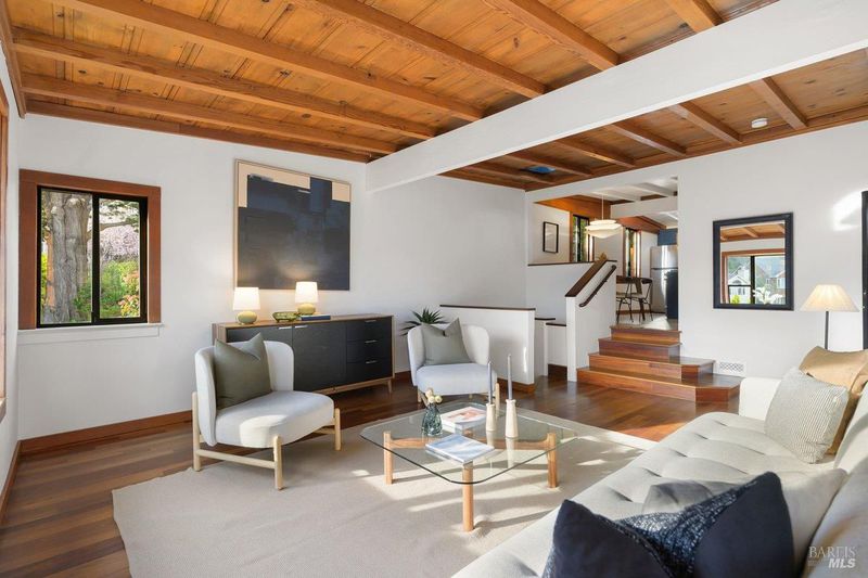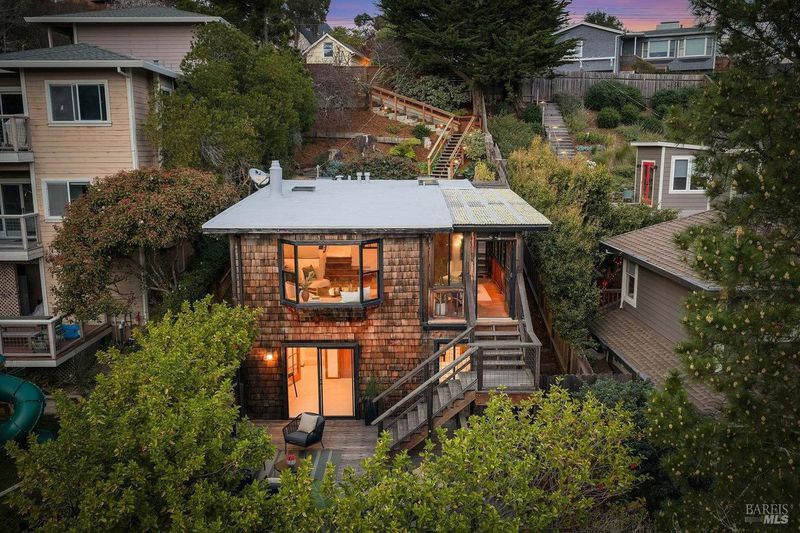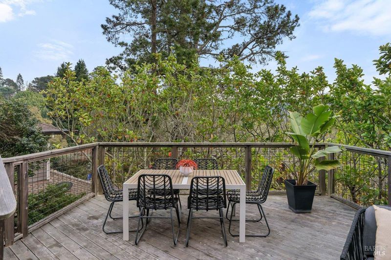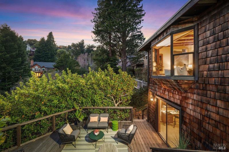Set on a private, sunny street-to-street lot in Mill Valley, 12 Alturas Way blends classic charm with effortless indoor-outdoor living. Terraced gardens and a generous sun deck create the kind of setting that feels both welcoming and secluded. Inside, an enclosed porch leads to a bright living room with hardwood floors and open-beam ceilings, flowing into a remodeled kitchen and comfortable open floor plan. A large bay window frames wide Tam Valley views. Two bedrooms and a full bath complete the main level. Downstairs, the spacious primary suite offers a large walk-in closet, a private bath, and sliding glass doors that open directly to an expansive deck. The home is approximately 1,380 square feet plus storage, a laundry room, and ample parking. The 4,800-square-foot lot includes a second entrance at 909 West California Street, adding flexibility, privacy, and future potential. Minutes to Tam Junction with easy access to 101, 15 minutes to the beach, and a quick hop to Miller Avenue and downtown Mill Valley. A home you won't want to miss.