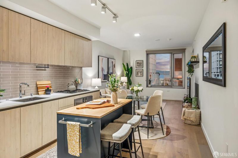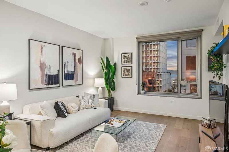 Located in the newest building in the heart of San Francisco's vibrant Mission Bay neighborhood, this bright and modern 1-bedroom, 1-bathroom residence offers an ideal blend of comfort, style, and waterfront living. Spanning 804 sqft, the open floor plan features a spacious living area with east-facing windows and partial views of the Bay, Oracle Park, and Bay Bridge. The sleek galley kitchen provides ample cabinet and counter space, with a panel-ready refrigerator and dishwasher thoughtfully concealed behind custom wood cabinetry for a seamless, contemporary look. One Mission Bay offers luxury living on the waterfront as the last condominium built directly on the channel, with exceptional access to parks, walking paths, and the best of Mission Bay. Residents enjoy resort-style amenities including a 24-hour doorperson, outdoor heated pool, resident lounge and dining areas, fire pits, sauna, cabanas, and barbecues. Just outside your door are neighborhood favorites including Arsicault Bakery, Philz Coffee, Blue Bottle Coffee, Via Aurelia, IKE's Love & Sandwiches, Insomnia Cookies, Gus's Market (across the street), Safeway, Chase Center, Spark Social, Reveille Coffee Co., Joe & The Juice, Flour + Water Pizza, Sweetgreen, Happy Lemon, SomiSomi, Atwater Tavern, and the rooftop bar at Cavaa. Nearby fitness studios include LuxFit, Lagree Fitness, solidcore, and CorePower Yoga. Nearby parks include Mission Creek Park, China Basin Park, Mission Bay Kids' Park, Creekside Park, and UCSF Mission Bay Community Park, plus the waterfront running trail along Terry A Francois Boulevard.