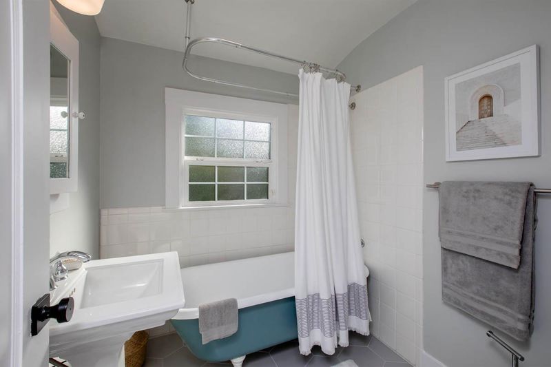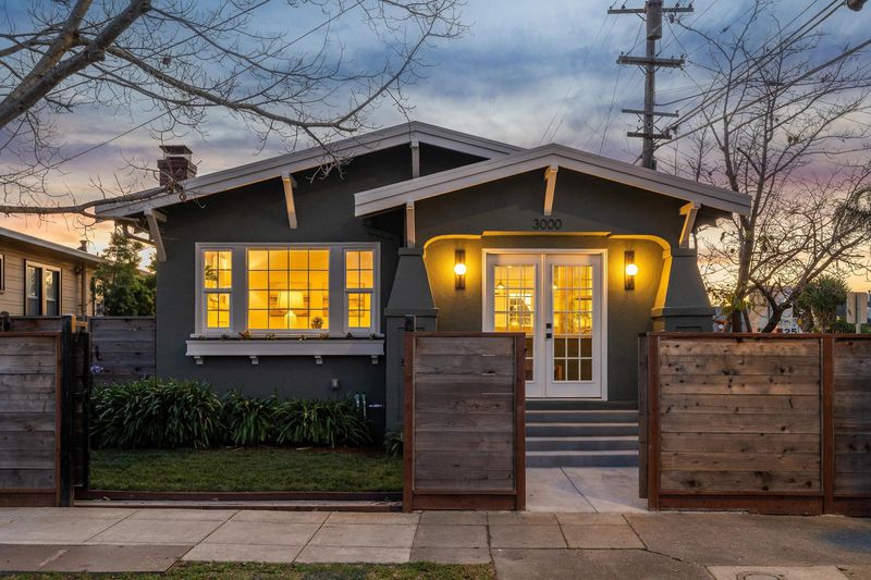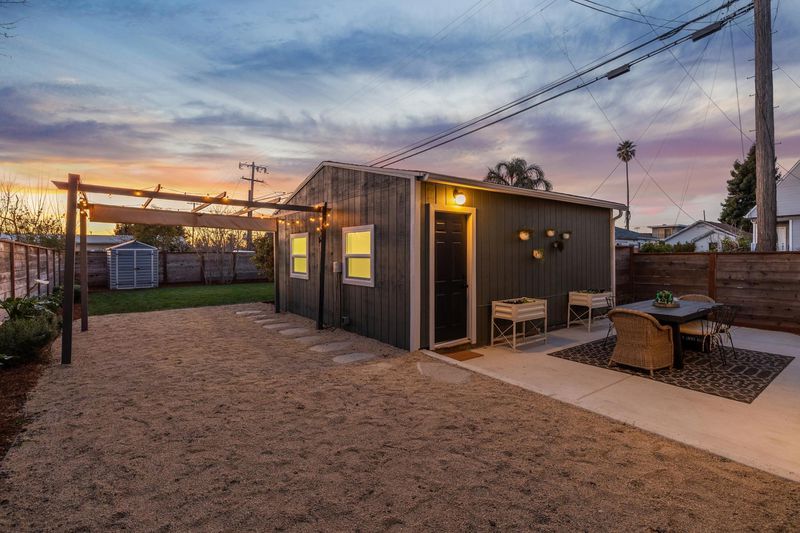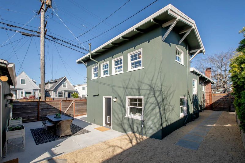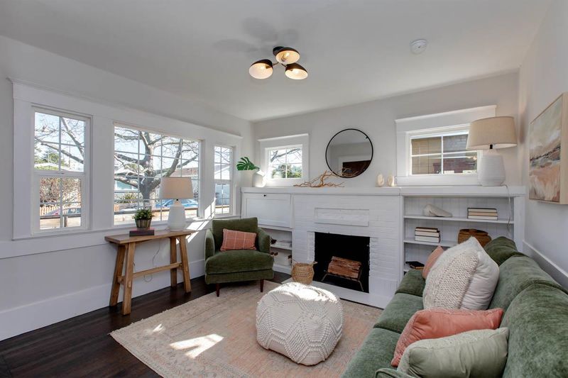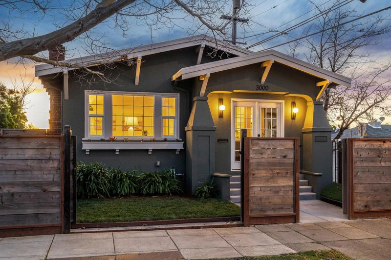 Located just blocks to Berkeley Bowl West and the many cafes, restaurants and shopping on San Pablo and Sacramento avenues in hip, vibrant South Berkeley, this 1923 Craftsman cottage blends vintage charm with turnkey perfection. While many original features offer period details, recent owner updates and remodels bring this home firmly into the 21st century. This sun-filled, split-level home features 2 bedrooms, 1 bathroom, an open kitchen/dining room, a finished garden level bonus space with laundry and storage, an enclosed front porch, and a detached garage converted into a home office/studio. Details include hardwood floors, picture rails, wainscot panelling, and a handsome original brick fireplace. The beautifully remodeled kitchen is open to a dining room with plenty of built-in bookcases and kitchen storage, and a small room off the kitchen can easily be turned into a walk-in kitchen pantry. The bedrooms have stylish light fixtures + closets with custom shelving. Bright, natural sunlight and dual-pane windows throughout the home. Professional landscaping and hardscaping + a new(er) 6-ft privacy fence surrounding the property. The large, deep lot is ideal for an income-producing ADU (5,120 SF). Easy access to I-580/I-80 freeways, ACTransit, Ashby BART.