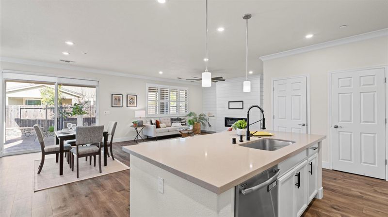 Built in 2019 and offering over 2,100 sq ft of single-story living with NO HOA, this beautifully upgraded 4-bedroom, 3-bath Roseville home blends modern design with everyday comfort on a desirable corner lot. The open layout is bright and inviting, with clean architectural lines and a natural flow that feels both elegant and easy to live in. At the center of the home, the open-concept kitchen overlooks the dining and living areas, creating a seamless space for entertaining and daily life. Featuring white cabinetry, stainless-steel appliances, quartz countertops, and a spacious island with a sink, the kitchen is both stylish and functional. The adjoining living room is enhanced by a sleek built-in fireplace that adds warmth and a refined focal point. The primary bedroom is generously sized and includes a built-in walk-in closet, offering comfort and practical storage. Additional bedrooms provide flexibility for guests, a home office, or family needs while maintaining a cohesive, upscale feel. Outside, enjoy a fully landscaped, private backyard designed for low-maintenance livingintimate in size yet thoughtfully finished to create a peaceful outdoor retreat. Conveniently located near parks, shopping, dining, highly rated schools, and major commuter routes, this move-in-ready home offers both comfort and lifestyle in one desirable Roseville location.