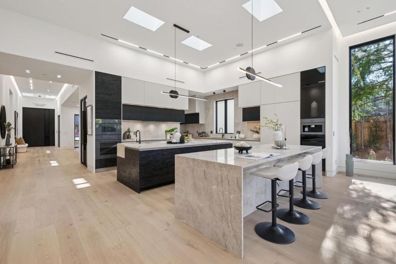 Welcome to 14695 Horseshoe Drive in Saratoga, a stunning brand new construction home completed in December 2025. This modern, single story executive residence showcases exquisite contemporary finishes and fully landscaped grounds, offering exceptional curb appeal and a serene backyard retreat. Upon entry through the striking pivot front door, you are greeted by a private office with glass French door. The formal living/dining rooms centerpiece is a beautiful fireplace with floor to ceiling stone surround. Soaring ceilings and skylights throughout fill the home with abundant natural light, creating an airy and inviting atmosphere. The gourmet chefs kitchen with two islands and equipped with premium Miele appliances, opens seamlessly to the expansive great room. Floor to ceiling sliding glass doors create a perfect indoor outdoor flow, ideal for entertaining and everyday living. The patio and outdoor kitchen connect the main residence to a two bedroom, two bathroom ADU, forming a shared and versatile outdoor entertaining space. Perfectly suited for Silicon Valley living and ideally located near Downtown Saratoga and LG, offering access to some of the Bay Areas finest dining, plus Hakone and Mountain Winery. Situated within the highly sought after Saratoga High School district.