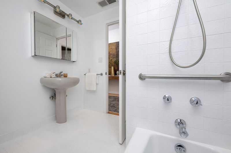 - Double Sinks, Dual Flush Toilet, Full on Ground Floor, Primary - Stall Shower(s), Shower and Tub, Shower over Tub - 1, Stone, Tile, Updated Bath