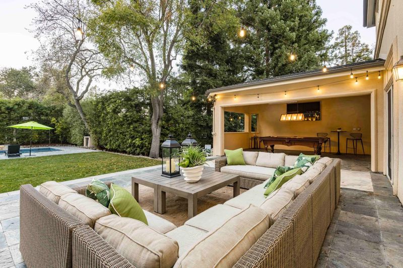 Tucked away at the end of a cul-de-sac on over .40 acres, this elegant home offers exceptional privacy and a refined two-level floorplan of nearly 4,000 sf. Step into a dramatic foyer with a soaring ceiling and stained-glass dome, opening to inviting formal rooms, an expansive kitchen with top-brand appliances, a walk-out family room with seamless indoor-outdoor flow, and a conveniently located office. Four bedrooms include a spacious primary suite with a beautifully appointed bath designed for comfort, scale, and quiet retreat. The expansive backyard is ideal for entertaining, featuring a pool and a covered patio with built-in heaters for year-round enjoyment. All of this is paired with an unmatched location just minutes from a premier country club, Sand Hill Road, Stanford University, downtown Menlo Park, and Interstate 280, with access to acclaimed Las Lomitas Elementary, La Entrada Middle, and Menlo-Atherton High School (buyer to verify eligibility).