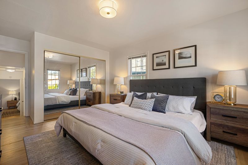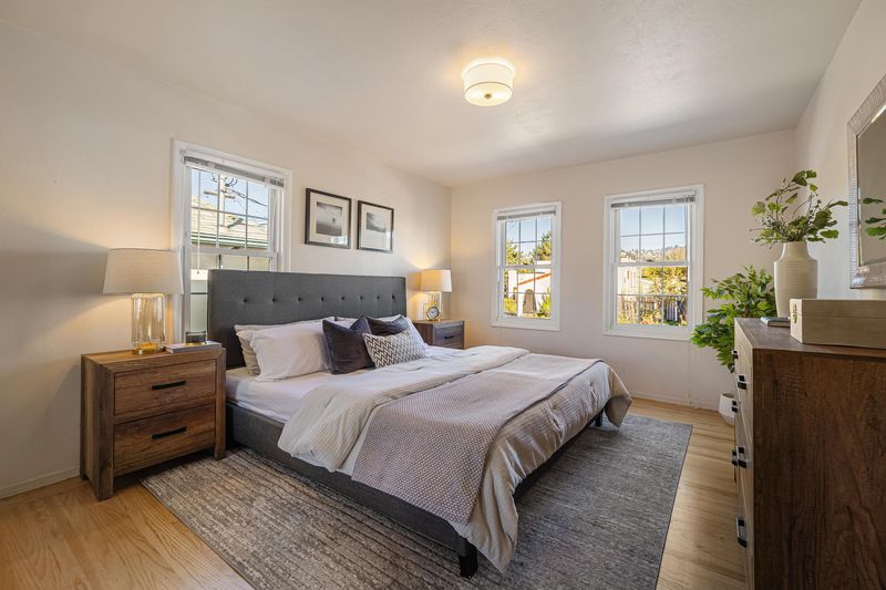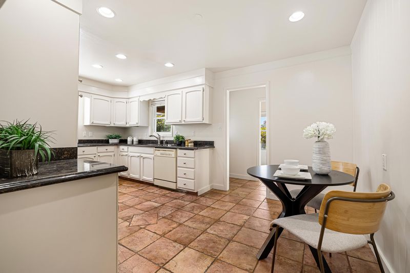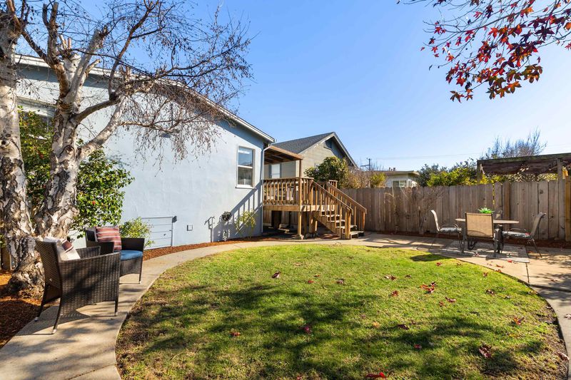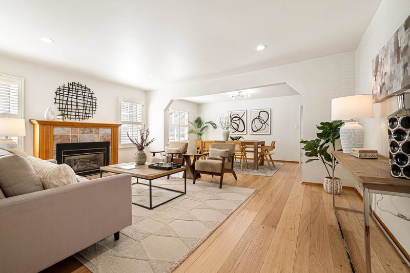 This well-loved home blends classic charm with thoughtful updates in a super convenient location. A welcoming front porch with wrought-iron railing leads to a quaint entry that opens to formal living and dining rooms featuring original peg-and-plank hardwood floors. The spacious living room highlights an ornate oak-and-tile fireplace with an electric insert and a beautiful arched opening into the dining room. Just beyond the living spaces, you’ll find three bedrooms with larger-than-usual closets, including a sunny, east-facing split-level bedroom filled with natural light. Two updated bathrooms offer tile floors and newer vanities. The eat-in kitchen is both comfortable and functional, featuring granite countertops, tile floors, stainless-steel appliances, and a door that opens directly to the back deck. The backyard includes a rear deck, patio, and a small lawn area ideal for play or relaxing. Conveniently located near Solano and San Pablo Avenues, this home is close to shops, eateries, commute lines, schools, parks, and is part of the coveted Albany School District.