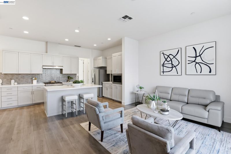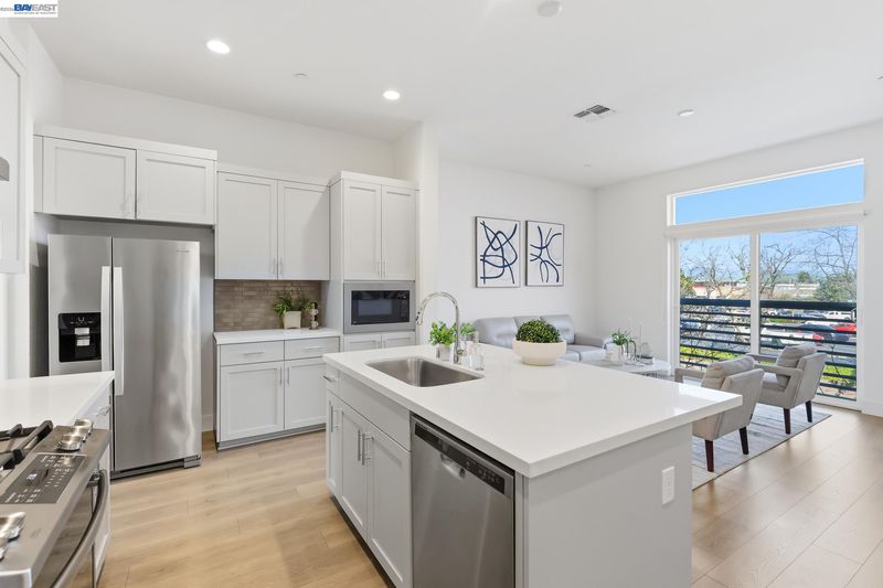 Heart of Downtown Dublin—an award-winning community. This model-like townhome blends modern design, luxury upgrades, and vibrant urban living. Thoughtfully designed indoor-outdoor living space, this home features a bright open floor plan with soaring 10-foot ceilings, oversized windows, and abundant natural light. The main living level is perfect for entertaining, with a sleek chef’s kitchen offering quartz countertops, stylish cabinetry, stainless steel appliances, and a spacious island that flows into the living area. A bedroom and full bath on the main level provide flexibility for guests or a home office. Upstairs, the primary suite offers a private retreat with a walk-in closet and spa-like bath, plus an additional bedroom and full bath. One of the home’s most exceptional features is the private rooftop deck—your own outdoor oasis with panoramic views of the Dublin Hills and Mt. Diablo. Perfect for relaxing, entertaining, or enjoying breathtaking sunsets, this space truly elevates the living experience. Additional features include an attached 2-car garage and unbeatable proximity to BART, shopping, dining, and 580/680. With a low tax rate and HOA, and a location that truly has it all, this is modern East Bay living at its finest.