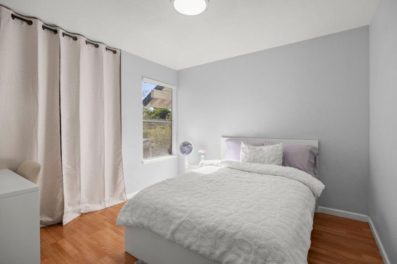 Don't miss this unique chance! Explore the desirable upper unit in the peaceful, gated Summerton Community. This rare find boasts a private entry in a tranquil courtyard, with lovely views of a pond, fountain, and redwood tree. This updated 2-bedroom, 1-bathroom unit is 953 SF and features fresh paint, quality upgrades, and high-end finishes. The modern kitchen includes quartz countertops, new recessed lighting, stylish fixtures, a breakfast bar, and newer appliances. The open layout showcases vaulted ceilings and a cozy fireplace. A large sliding door opens to a spacious patio with extra storage. The primary bedroom features a vaulted ceiling, a walk-in closet. Additional perks include an in-unit laundry room with washer and dryer, central A/C and heating, and 2 private parking spaces (1 covered, 1 open). Enjoy resort-style amenities in a prime location near Grand Century Mall and Costco, with easy freeway access (101/280/680) to Downtown San Jose and major tech companies. This quiet, gated community offers privacy and features tennis courts, a swimming pool, green belts, trails, and ponds. The HOA fee covers water/sewer, trash, common area maintenance, master insurance, basic TV cable, and internet. Come see what makes this home special, won't last long! Free 6 months of HOA