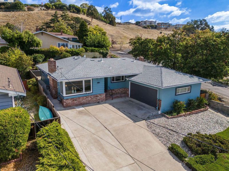 Single level Bay-O-Vista classic with fresh style and easy indoor outdoor flow. This light-filled 3 bedroom, 2.5 bath home welcomes you with an oversized picture window and a stone fireplace in the living room. The adjoining family room with brick fireplace opens to a sunny patio that makes entertaining simple. The newly updated kitchen balances, modern luxury with classic charm. Showcasing design forward color choices on the cabinetry, modern subway tile, quartz countertops, and a cozy breakfast nook. Recent updates include interior and exterior paint, updated lighting, updated kitchen, and bathroom, wide-plank floors that deliver a modern, move-in-ready feel. The hall bath features a new double vanity with matte black fixtures and new flooring. Important system work has been completed, including rear foundation and drainage upgrades for long-term peace of mind, plus a newer roof. The low-maintenance yard offers multiple seating areas, terraced plantings, and hillside outlooks. A two-car garage and a wide driveway provide easy parking. Minutes to Lake Chabot trails, local shops and dining. A bright, comfortable home in a coveted neighborhood with room to personalize over time.