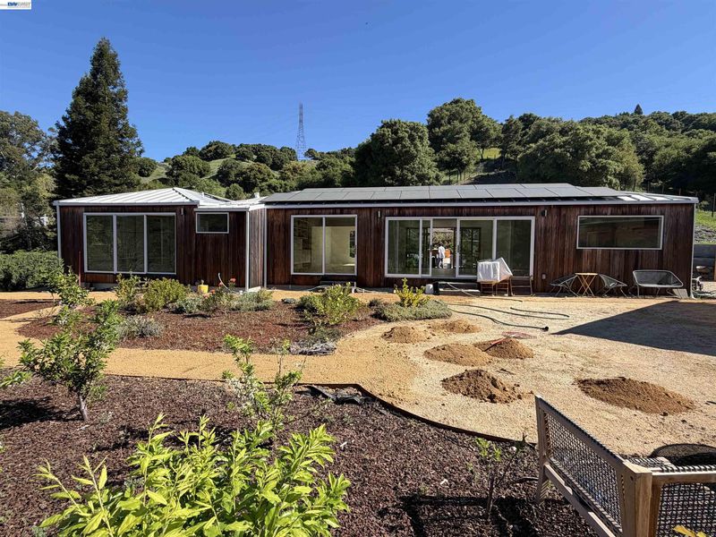 Totally renovated and thoughtfully reimagined, this stunning single-story retreat blends modern design with soulful, farm-to-table living. Surrounded by rolling hills and framed by walls of windows, the home captures breathtaking views while filling every space with warm natural light. Sea Ranch–inspired wood siding and a sleek metal roof create timeless character, while the open-concept kitchen and family room form the true heart of the home inside. Expansive sliders create seamless indoor-outdoor living—perfect for gathering with friends, hosting dinners sourced from your own garden, or enjoying peaceful mornings overlooking the hills. Designed with sustainability in mind, the home features energy-efficient heat pump systems for heating, cooling and hot water, and Tesla Powerwalls that provide energy storage and backup power. Oversized bedrooms and spa-inspired bathrooms feature elevated finishes and calming designs. Outside, soak in the hot tub under the stars, harvest from raised garden beds, and enjoy a charming homestead setting with dwarf goats and chickens. A thriving, established orchard enhances the property with 50 miniature fruit trees, along with grapes, passion vines, and blueberry bushes—all supported by drip irrigation. This is more than a home—it’s a lifestyle.