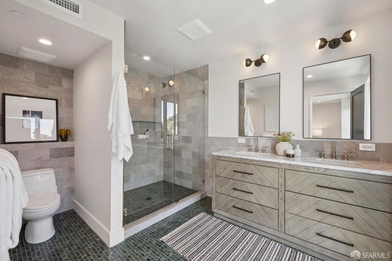 This ground-up masterpiece epitomizes architectural sophistication, offering an expansive scale and bespoke finishes tailored for the most discerning urbanites. Situated within the city's most sun-drenched microclimate, this penthouse residence spans over 3,000 square feet across two meticulously designed levels, accessible via a private elevator from the secure garage. The main floor is bathed in natural light, courtesy of strategic skylights and soaring picture windows that frame the horizon. A majestic great room, anchored by vaulted ceilings, transitions seamlessly to a private panoramic deck, creating an effortless indoor-outdoor lifestyle. The lower level serves as a private sanctuary, featuring four generous bedrooms and three bathrooms on a single floor (a remarkably scarce configuration in the city) providing a compelling alternative to a detached single-family estate. The primary suite is a masterclass in luxury, boasting a spa-inspired en-suite and an expansive walk-in dressing room. Modern essentials are integrated throughout, including air conditioning, solar efficiency, and EV-ready parking. As the crown jewel of an intimate two-unit association, this residence offers an unparalleled blend of privacy and prestige.